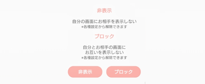 ブロックと非表示の違いは「相手からの見え方」だけです。