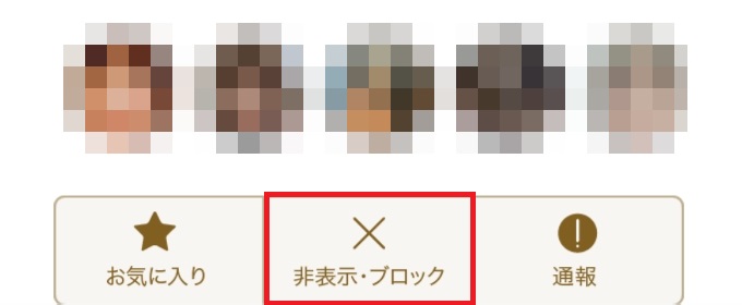マリッシュではブロック以外に、相手を見れなくできる「非表示」という機能があります。
