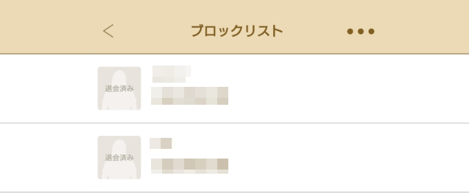 一度ブロックした相手は「ブロックリスト」に送られ、以後検索画面やグループに表示されなくなります。