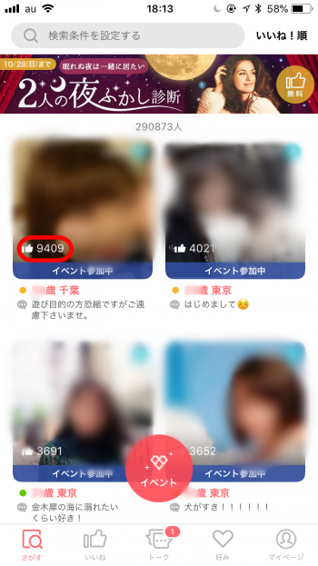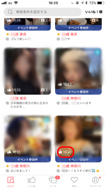男性会員は、普通の有料会員の場合、いいねが多い順に並び替えできないからです。